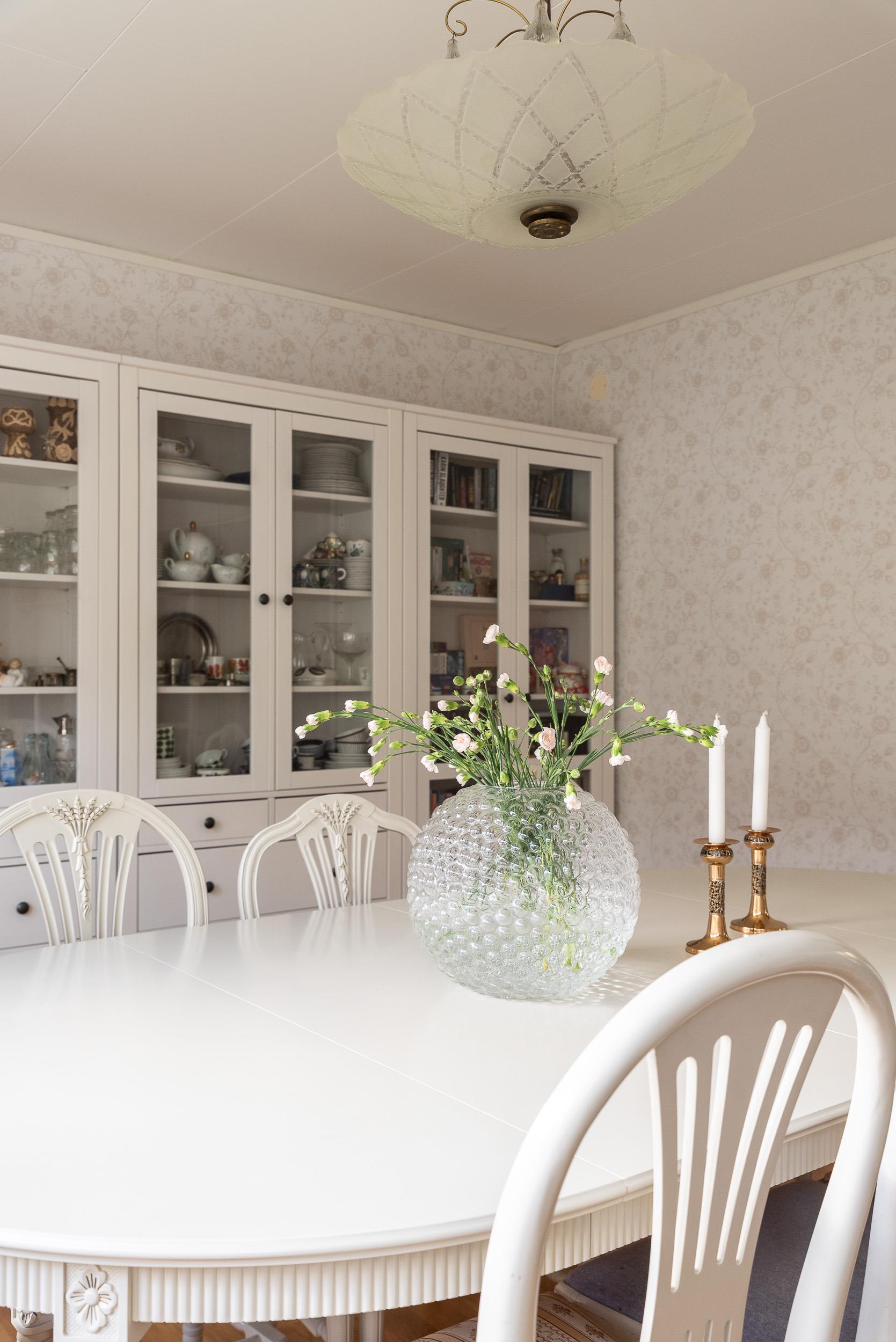 Denna inglasade altanen var efterlängtad. Den har ett perfekt västläge mot baksida och åker. Här får det plats både matmöbler och soffgrupp för relax efter maten. Stora sidofönster är fasta, små fönster går att öppna upp. Långsidans glaspartiern går naturligtvis att öppna upp när det är som varmast.