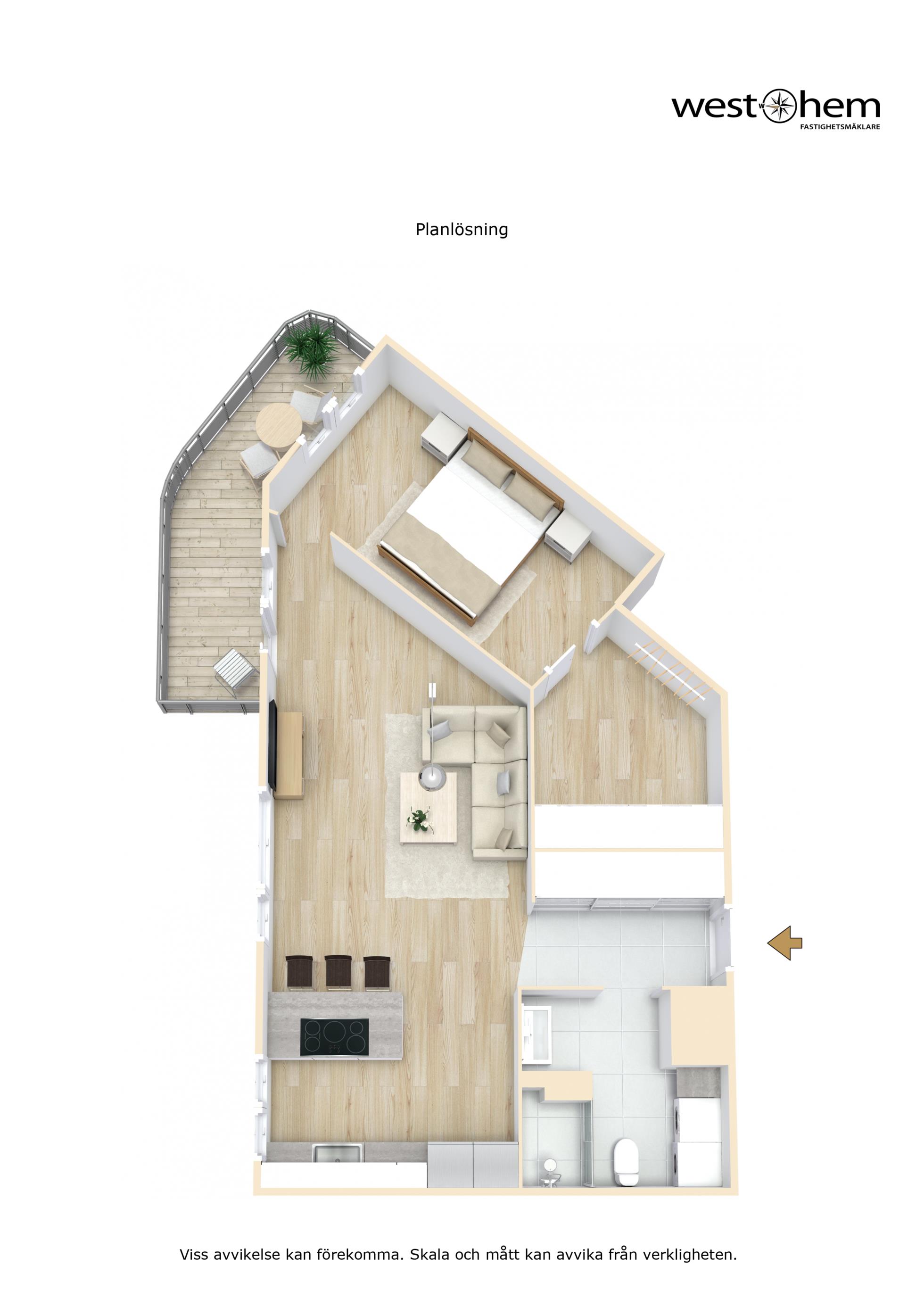 En ljus och luftig tvåa där planlösningen optimerats med avseende på funktion och trivsel.