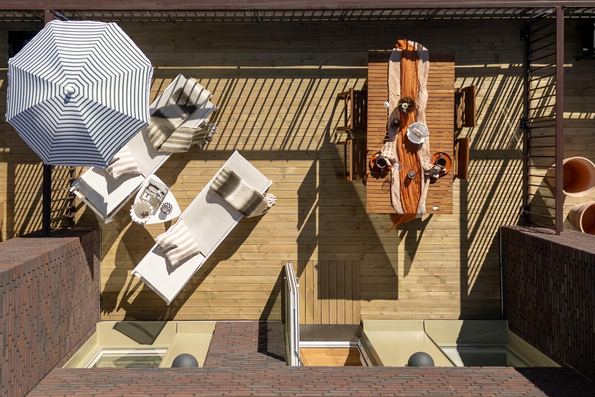 Att det finns uteplatser på båda planen, och åt båda hållen, gör det enkelt att hitta en plats i solen.